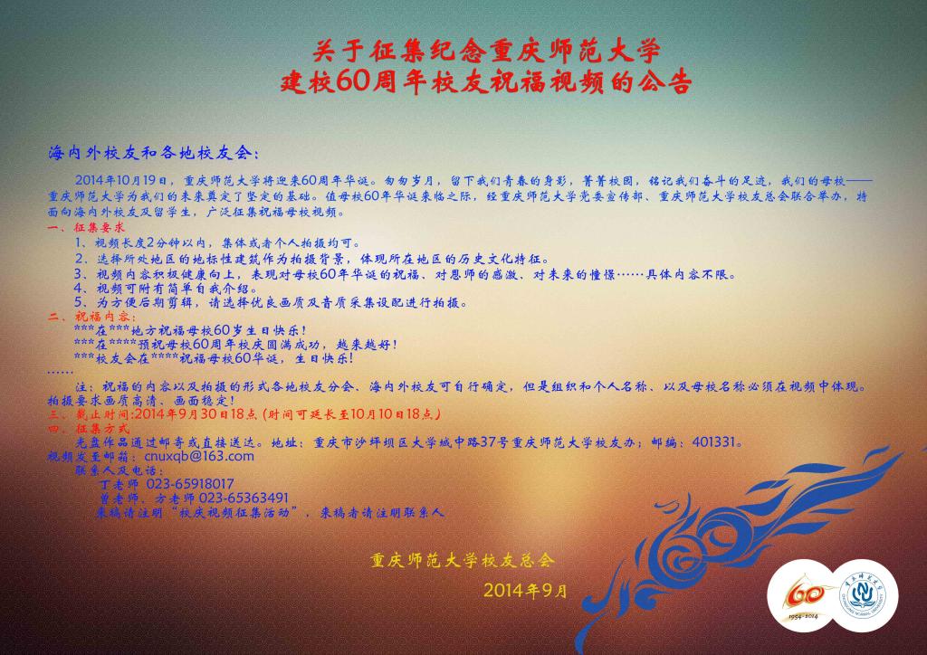 10月征集h韩漫 60周年校庆校友祝福视频公告