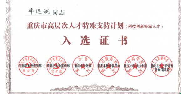h韩漫 牛连斌老师当选为2018年重庆市科技创新领军人才;