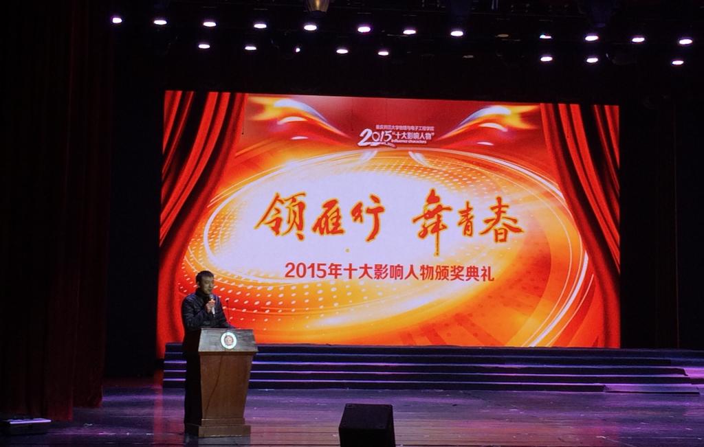 2015年“领雁行,舞青春”十大影响人物颁奖典礼在校友会堂隆重举行。学校职能部门领导、学院党政领导、系主任、专业课教授、辅导员及全体物电学院学生参加了本次颁奖典礼,共享成果与感动。