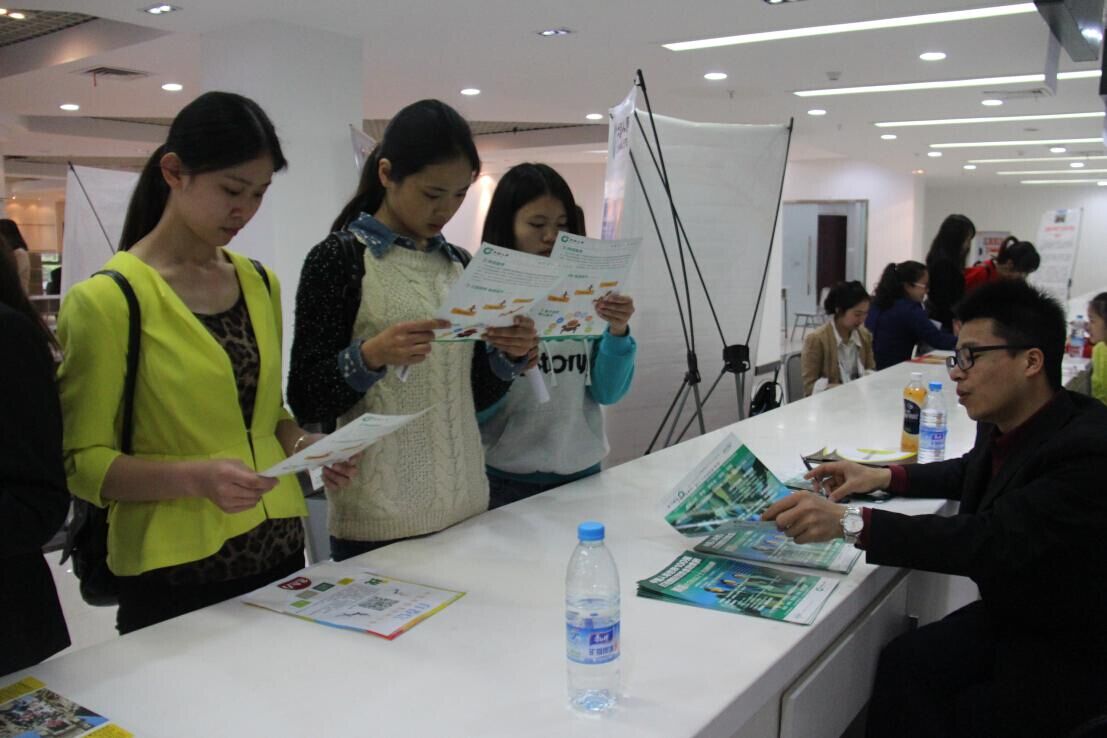 2015届毕业生双选会”。据了解,此次共有30多家用人单位前来招贤纳士,近百名2015届毕业生参加了双选会会。物电学院学院领导对此次双选会会也是给予了高度重视,党委副书记冉久飞、11级辅导员余海蔚亲临现场与招聘单位交流都通了解市场动向,细心地引导毕业生询问招聘单位的详细情况。