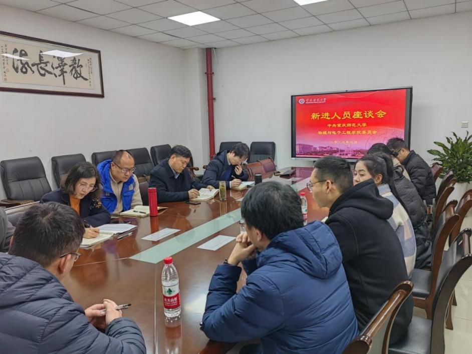 在集贤楼524会议室召开2022年新进人员座谈会,物电学院主要领导、工会主席和十位新进人员参加了会议,会议由党委书记杨云主持。