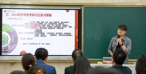 重庆市第一实验中学黎鑫老师做了题为《中考物理试题的“狂飙”——教材“原”宇宙》的微讲座。黎老师从中考试题和初中物理教材、重视物理教材、2023中考复习三个方面,对中考物理试题进行了深入解读,提出要充分重视《课程标准》和教材在中考复习中的重要地位和作用。通过研究《课标》、夯实双基、周密计划、依托课堂、重视错题、合作学习等策略,指导学生在复习中夯实基础、应用变形,提升学生学习力和科学思维。