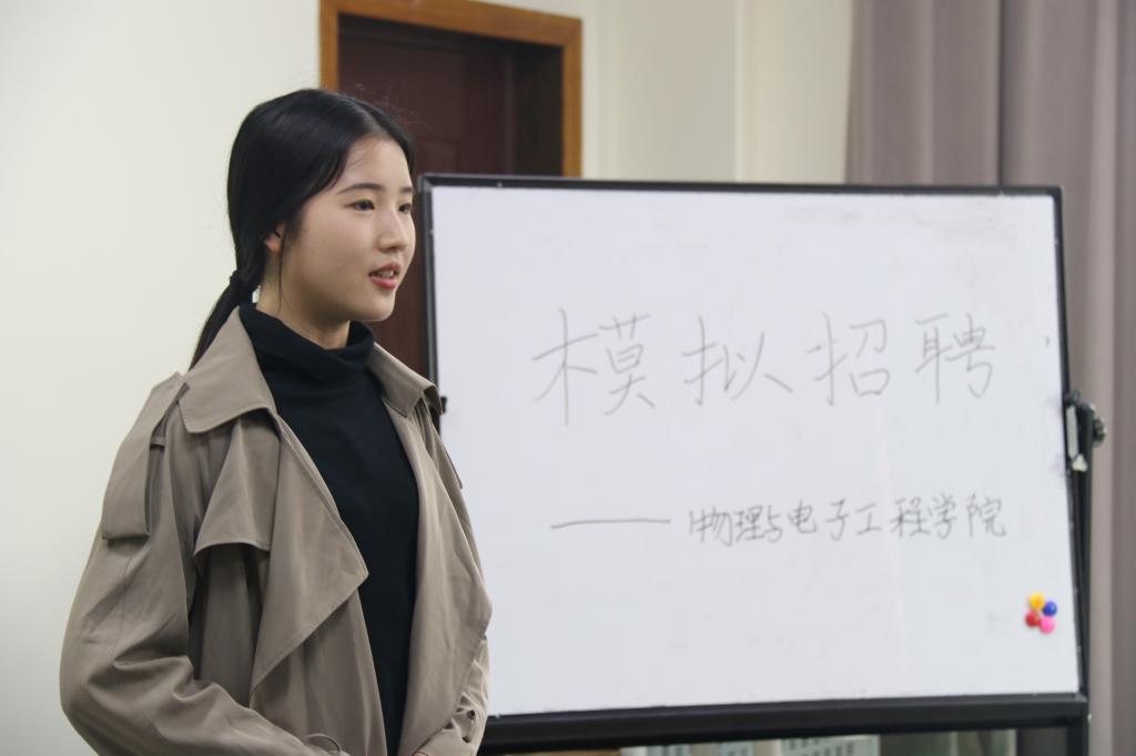 辅导员余海蔚、杨阳、漆佳、赵和平担任评委。在经历前期严格的线上初赛选拔后,共14位参赛选手得以参与到线下选拔的角逐中。评委们结合参赛选手简历与职业生涯规划书的撰写质量,选拔优秀学生开展“个人展示”环节评审。