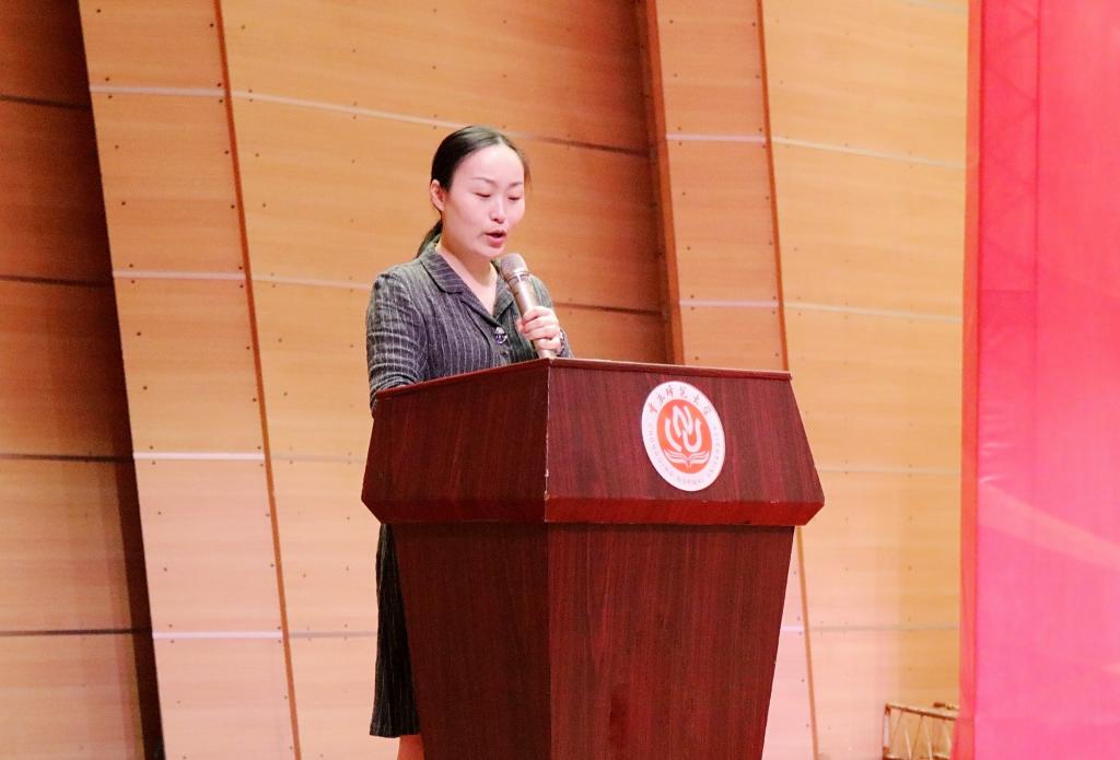 高年级学生代表张茁莉借物电学子们在日常学习、专业竞赛、考研等各方面能够迎难而上、奋进前行,最终获得成功的优秀事例向同学们分享了一个词——坚持,勉励同学们要坚持学习、坚持服务同学,不断提升自我、锻炼自我。