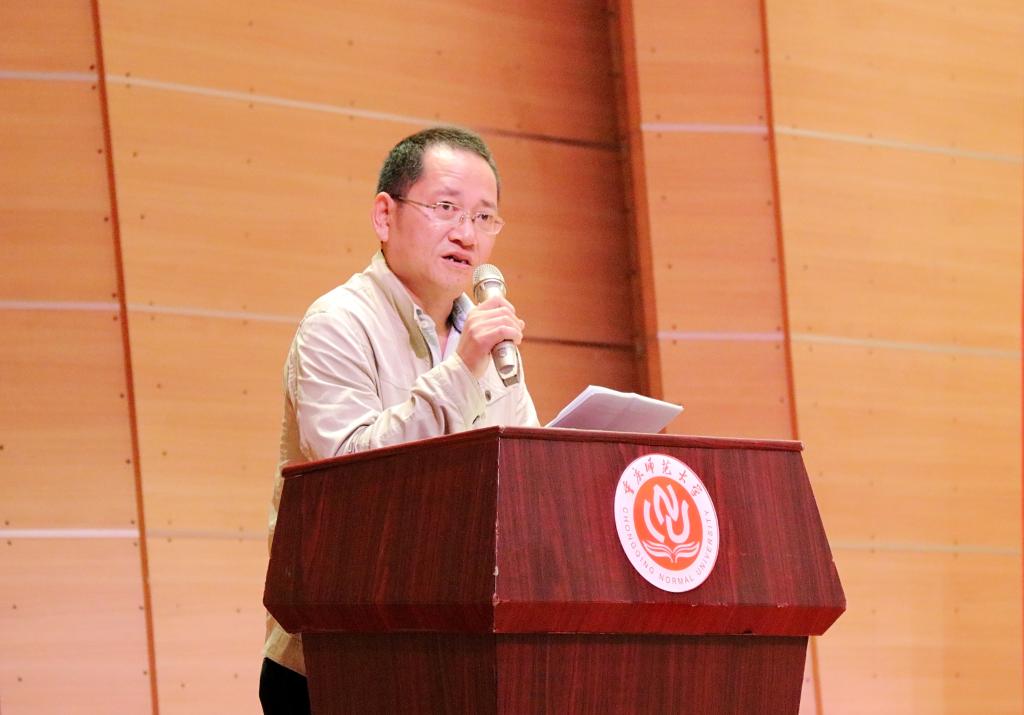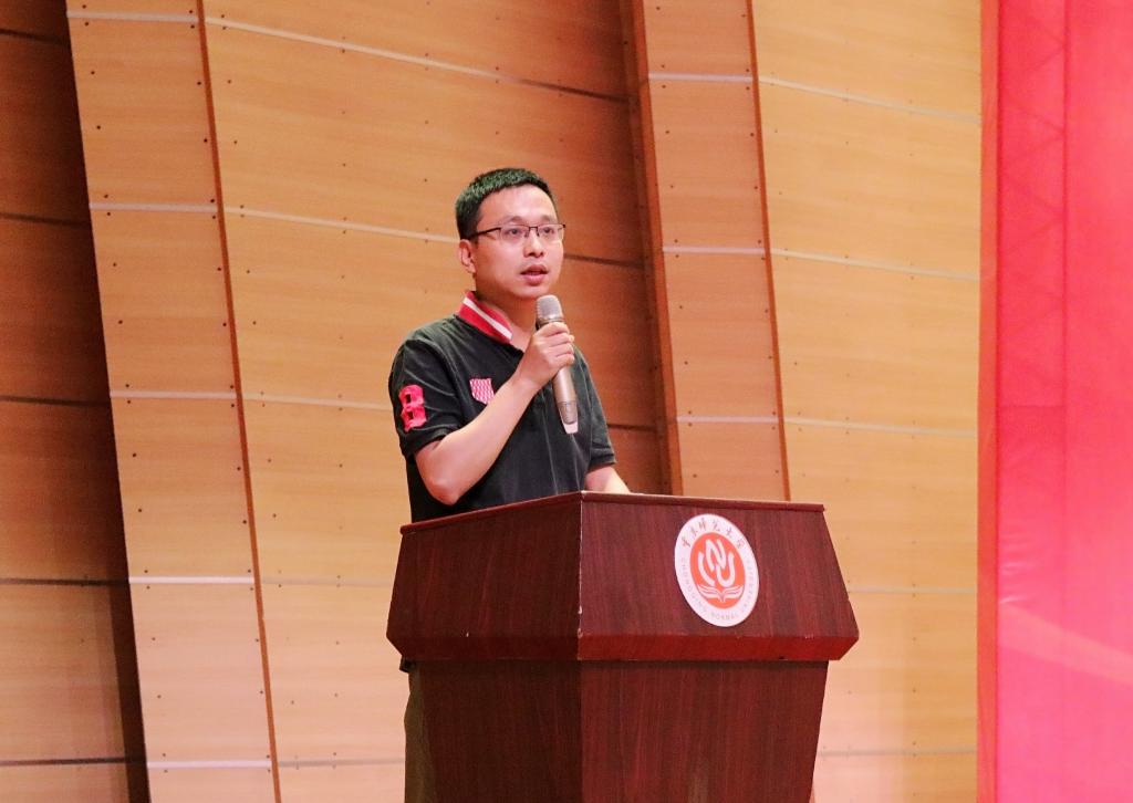 活动伊始,学院教师代表、电功能材料重庆市重点实验室副主任毋志民教授上台致辞。毋志民教授代表学院全体教师对2019级新同学加入物电学院表示热烈的欢迎,并结合自身学习、工作经历,向新生们分享了三点感悟:一是要拥有理想,二是要学会脚踏实地,三是学会宽容、沟通和交流。他希望同学们能够爱上重师,爱上物电学院,好好学习,珍惜时光,用自己的大学时间做到不求惊天动地、但求问心无愧。