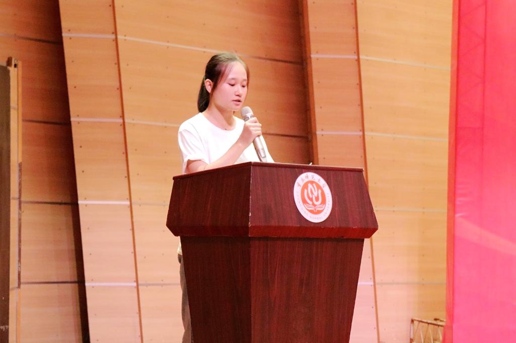 随后,新生代表吴佳昕表达了自己对大学生活的畅想,并鼓励同学们为自己的理想努力奋斗,成为怀揣梦想、积极行动的人。