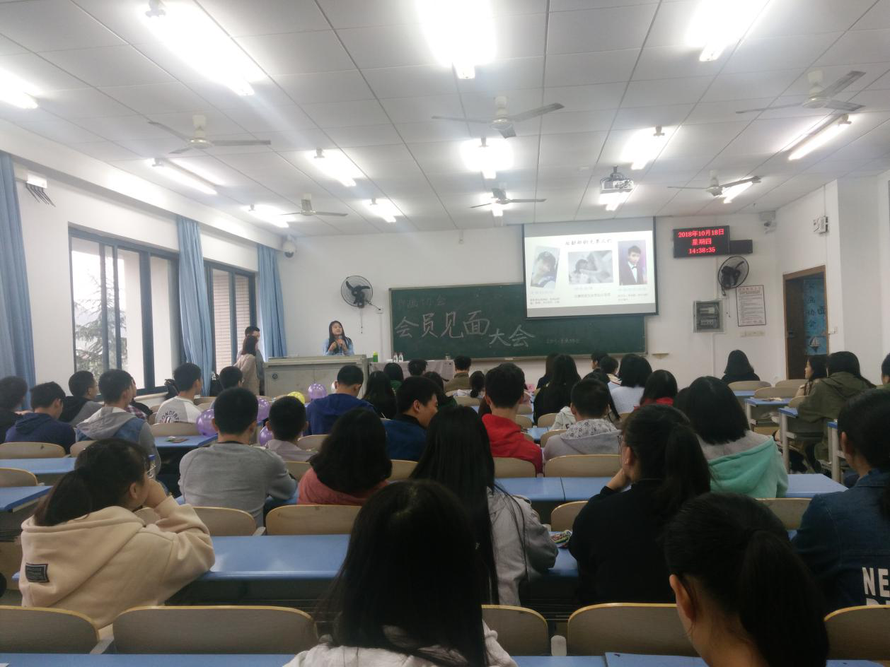 笔以尖峰,墨以浓香。新的学年,协会招新的顺利开展,也为书画协会注入了一批新的力量。2018年10月18日,书画协会迎来了第一次会员见面大会,教室的窗外下着淅淅沥沥的小雨,而活动却在窗内热火朝天的进行。