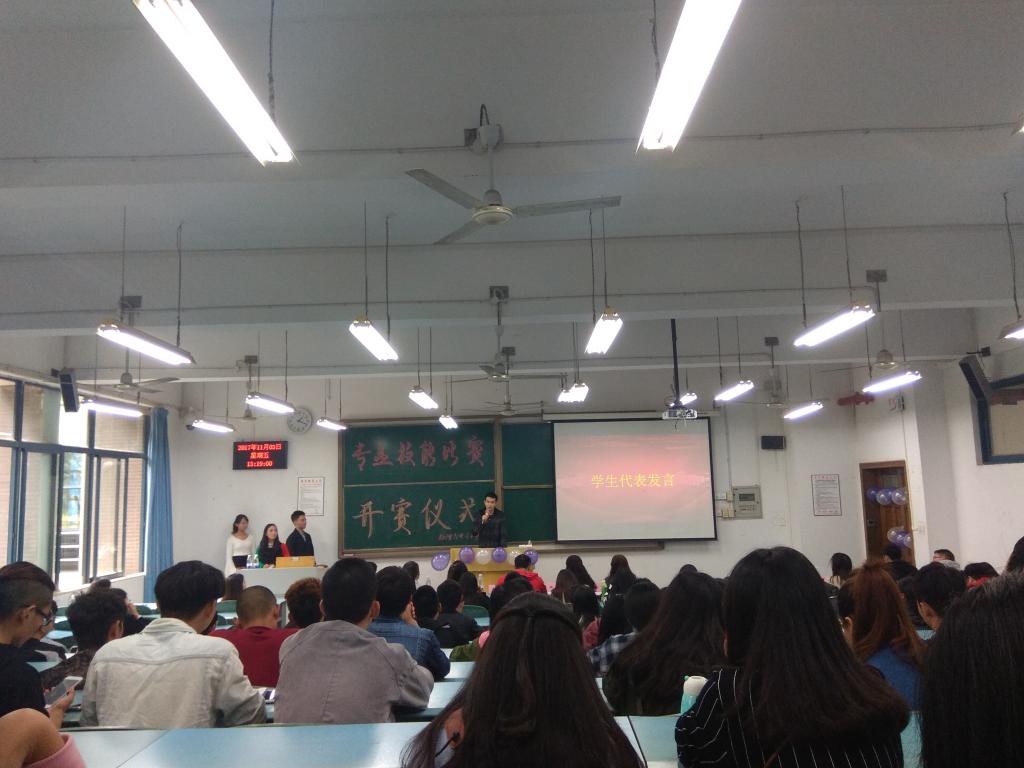 学生专业技能水平和动手实践能力,丰富比赛经验,为今后每位学子的就业打下良好基础,促使同学以最好的状态迎接大赛的到来,增强同学们的自信心,2017年11月3日下午一点,物理与电子工程院学生会科技部、学习部于弘德楼15104开展专业技能竞赛开赛仪式。邀请各专业老师为参赛同学现场指导,从而帮助同学们整理思路,积极备战。到场嘉宾有专业技能竞赛指导老师罗光老师、张丁可老师、范嗣强老师,团总支书记兼学工办主任李青松老师和全体辅导员,以及非师范生学生代表石林,师范生学生代表唐越。