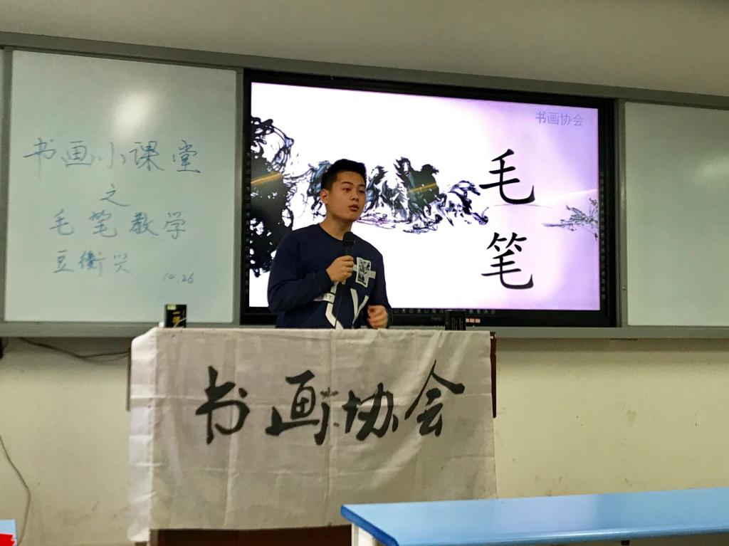 书画协会在弘德楼14203教室举办了第一次例行活动“毛笔字训练”。