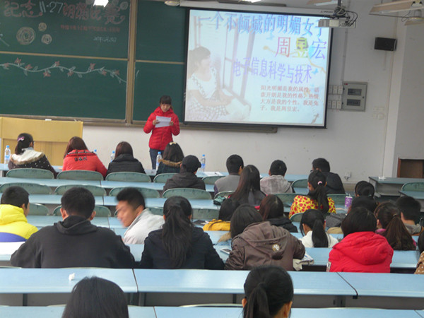 血的记忆让人铭记, 此次主题活动主要围绕重庆“11.27”大屠杀展开。活动开始,马列部副部长沈萍向同学们介绍了11·27惨案的背景及相关知识。她讲到,此次的纪念活动并不只是单单的朗诵比赛,而是要通过朗诵这样的新形式让大家体会革命先辈们不屈的民族精神,更加清楚地明白现在美好、和谐生活的来之不易,学会珍惜今天的美好生活。