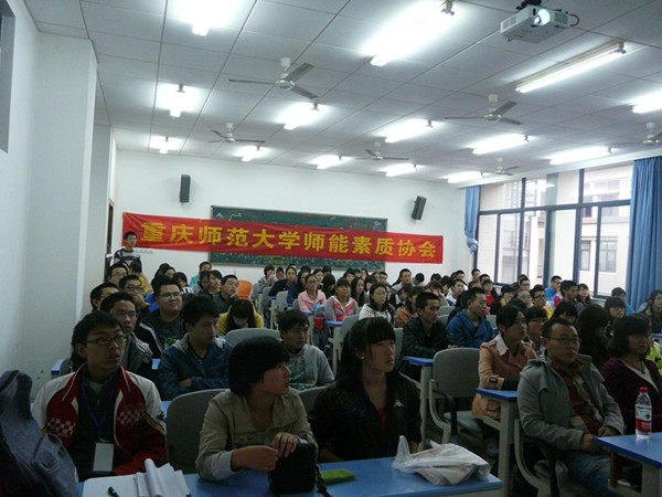 会长彭启俊的激情开讲——“为什么要提高师范生素质?”拉开了此次交流会的序幕。随后嘉宾代表从自身经历出发,用幽默的语言跟会员们一起分享那些提高师范生技能的日子,赢得了阵阵掌声。然后进入到了本次活动的重头戏:讲课技能突出的2011级覃绍凤同学从三个方面展开他的演讲:1、说课与讲课的区别。2、如何说课。3、说课的内容和对象。2011级的毕苗苗则跟会员们分享了自己的学习经验即如何讲课,以及如何培养讲课必须得具备的条件与能力。擅长书写三笔字刘畅同学就三笔字相关的技巧跟会员们展开了分享。首先他讲解毛笔的选择、书写毛笔字的基本技法,其中包括基本笔画的起笔和收笔。然后他就钢笔的书写中给会员们提了一些很好的建议。最后他还讲解了粉笔的书写技巧以及书写时的注意事项,并在黑板上现场展示了自己的书写功底,赢得了阵阵喝彩。