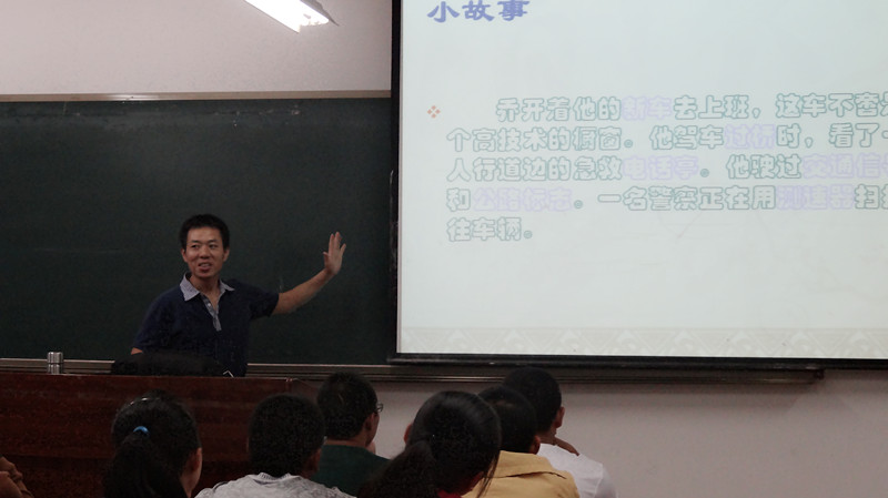 伴随着“军训回来你们有什么感受?”的简单提问,胡建明老师以故事叙述形式拉开此次演讲的序幕,故事内容以主人公日常生活为主,并配有关键词提示。胡老师通过对每个关键词的讨论,配以图片实物,引出所要表达的科学知识。其中图片内容包含早期优秀发展产物及现代科研成果。胡老师从生活实际出发以实例为奠基使新生感受到了专业魅力,也进一步地了解该专业在日常生活中的广泛应用,从而体会到该专业对社会发展的重大意义。一事一例的讲演方式,由小及大的内容推进,由浅入深的说理教育使新生充分了解专业内涵。