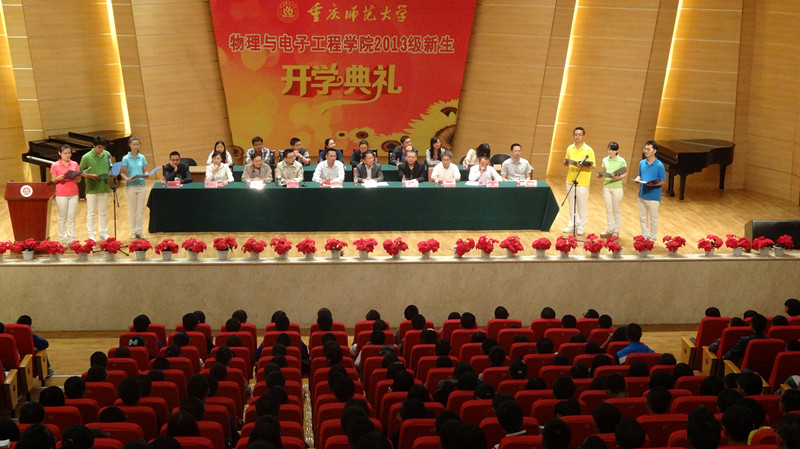 2013级新生开学典礼在校友会堂音乐厅隆重举行。院长崔玉亭、学院党总支书记唐敏、学院党总支副书记冉久飞、学院教师团队、辅导员团队以及全体2013级新生参加了此次开学典礼。典礼由学院党总支副书记冉久飞主持。