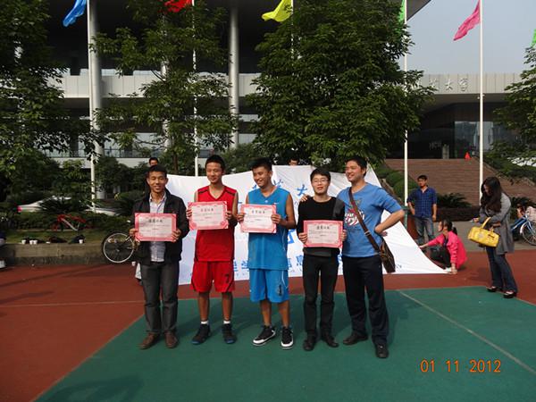 此次篮球的终决赛打得甚是激烈,场上的观众“撕心裂肺”的呐喊声震天动地,是篮球健儿们的强心剂。激烈的比赛进行了一个小时,最终2010级物理二班以26:23的成绩获得冠军,2010级电信班获得亚军,2010级物理一班以42:36的成绩获得季军,大二的女子队以11:8的成绩赢了大三的女子队,颁奖典礼上不仅为获奖的所有球队颁发了奖状和现金,也为优秀的拉拉队颁发了优秀文明奖奖状和现金,这样的奖励再次证明了一个团队是不可分割的整体,一个凝聚的集体才是队员们最坚实的后盾,颁奖之后各队、各班及对手之间相互拍照留念,记录了这动人精彩的瞬间——友谊长存。