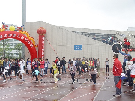的运动员们朝气蓬勃,活力四射,斗志昂扬。无论是长跑还是短跑,跳高还是跳远,都能看见物电学院运动员们矫健的身姿,为物电学院的荣誉而奋斗拼搏着。一枪声响起,打破了人群中的寂静,迎来了一片呐喊声,锣鼓铿锵,空气变得凝重而深远,时间变得迟钝,震天的呐喊声伴随着锣鼓声响彻一片苍穹,同学们的加油助威声瞬间点燃了运动员早已澎湃的激情,将赛场的气氛推向高潮。物电学院的全体成员吼出来了他们的不屈的信念,不放弃的精神,那是物电人的活力,那是物电人的激情,那是物电人的团结。