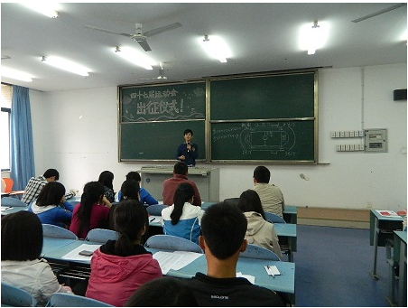 运动员出征仪式在弘德楼15204教室准时举行,到场人员有h韩漫
