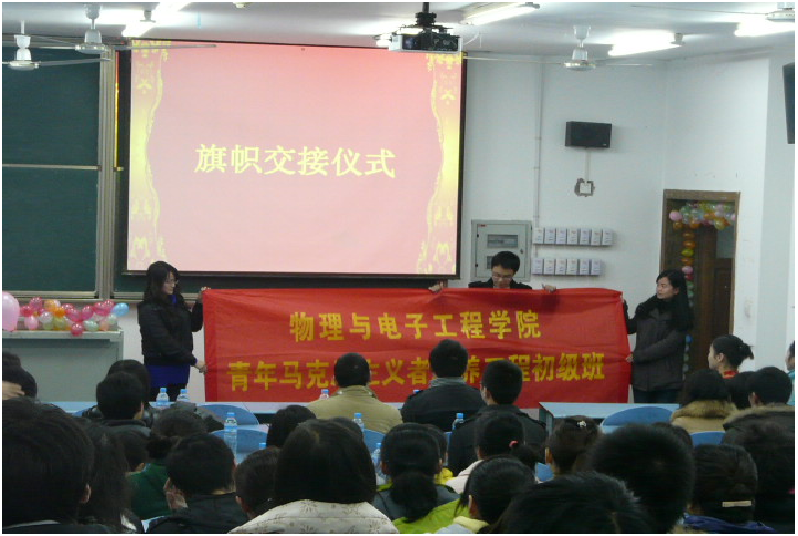 在弘德楼15203教室隆重举行了第二期“青年马克思主义者培养工程”初级班结业典礼暨第三期开班仪式。学院党总支副书记冉久飞书记,团总支副书记李青松老师以及团总支·学生会主要干部等作为嘉宾出席了此次活动。