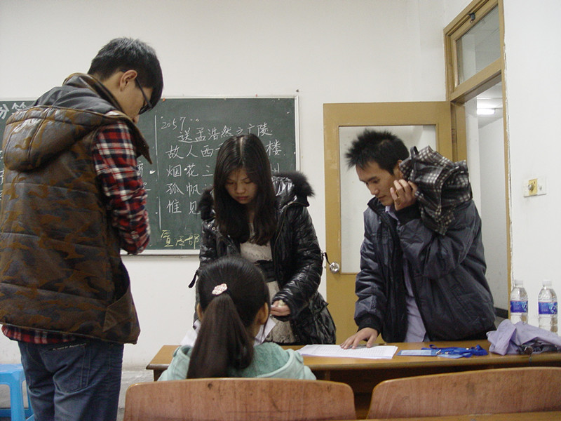 三笔字大赛在沙坪坝和大学城两个校区同时进行,大赛掀起了一场书万丈豪气,品传统精髓的轩然大波。此次大赛,来自两个赛区三个年级的同学积极的参与进来,参与人数超过280人次。本次比赛有幸邀请到2009级辅导员邓娜老师,2011级班主任蒋小平老师,团总支·学生会书记李佩,及马列部部长汪阳等学生会主要干部前来指导工作,同时邀请到原团总支宣传部部长罗晓,原办公室主任贾立平,原文艺部部长段美清,还有多次获得校书法比赛一等奖的赵树灵及在三笔字大赛中多次获得荣誉的李全朝、赵伯倩等同学来担任粉笔字现场评委。
