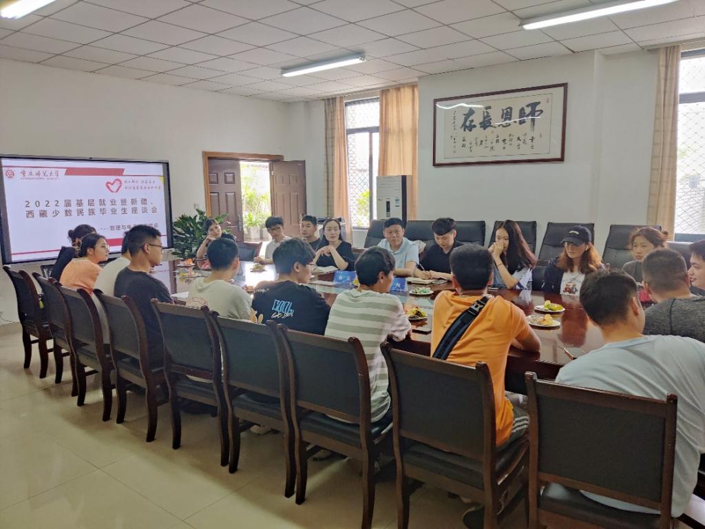 于集贤楼531会议室举行基层就业暨新疆、西藏少数民族毕业生座谈会,会议由党委副书记曾艳主持,党委书记杨云出席了会议。