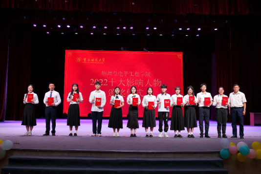 十大影响人物奖状及奖杯,鼓励他们再接再厉,发挥领雁作用,引领物电学子勤奋学习,刻苦钻研,利用大学时光成长成才!