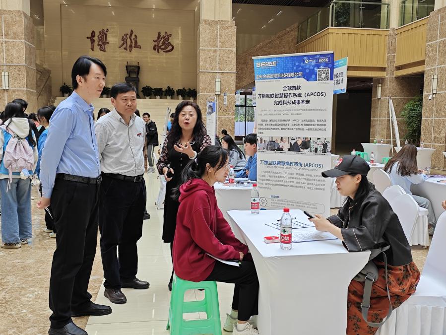 本次招聘会邀请到儋州市第一中学、台晶(重庆)电子有限公司、重庆金鑫科技发展有限公司、重庆英豪教育信息咨询服务有限公司、重庆云领智数科技有限公司等37家单位参会,主要涉及教育和电子信息行业,提供800余个岗位。参会单位中,有8家企业是学院通过访企拓岗工作拓展的实习与就业基地,为2024届未就业毕业生提供了大量优质岗位。