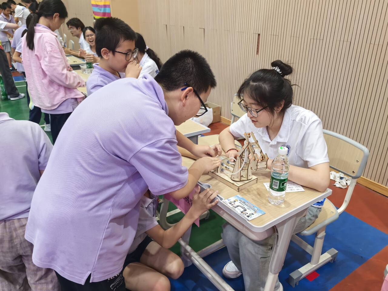 讲座结束后,游园会正式开启,整个体育馆化身为一片“物理乐园”,展台林立、项目纷呈,犹如一场科学主题的嘉年华,洋溢着热闹欢快的节日氛围。在志愿者的引导下,孩子们有序穿梭于各个体验区,尽情探索科学的奥秘。