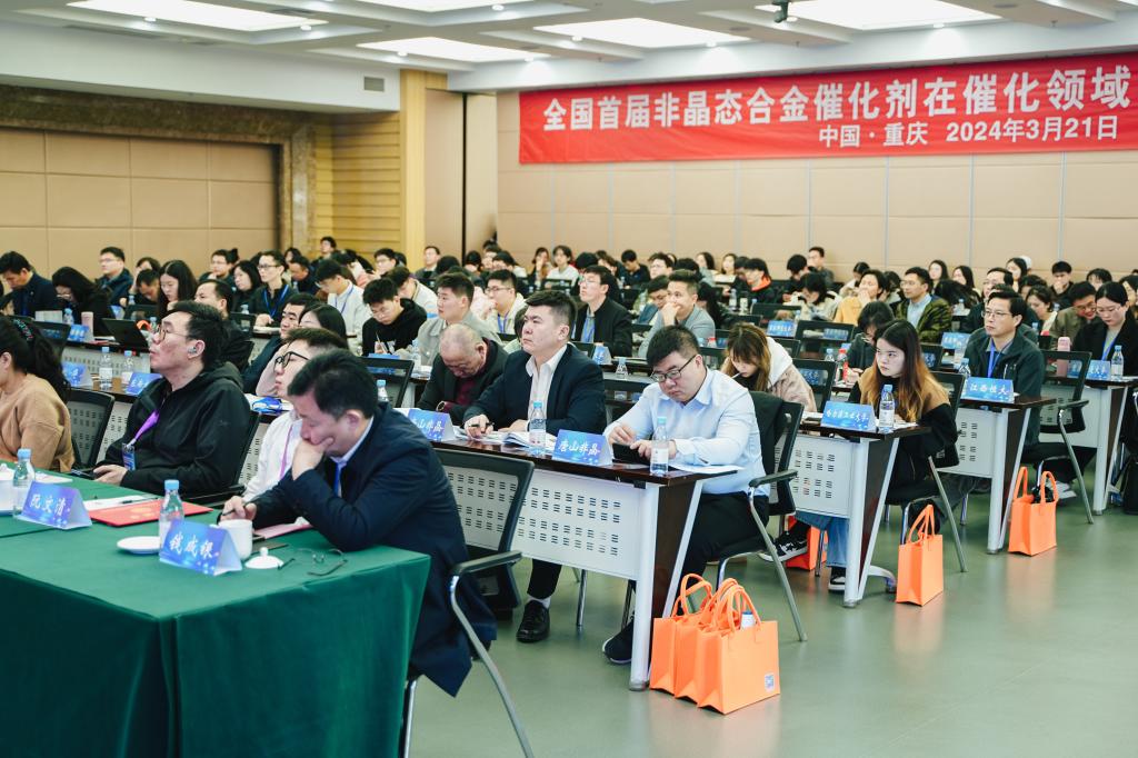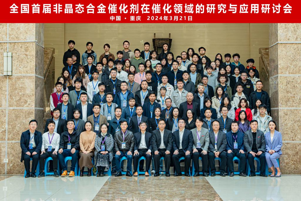 、西南大学、重庆物理学会联合主办。会议以进一步推动非晶态合金催化剂在催化领域的产学研融合发展为宗旨,邀请全国相关领域知名专家,企业及新能源、石化、生物医药等产业链技术人员交流研讨,来自全国高校、科研院所、企业、政府组织等单位约150人参加此次研讨会。