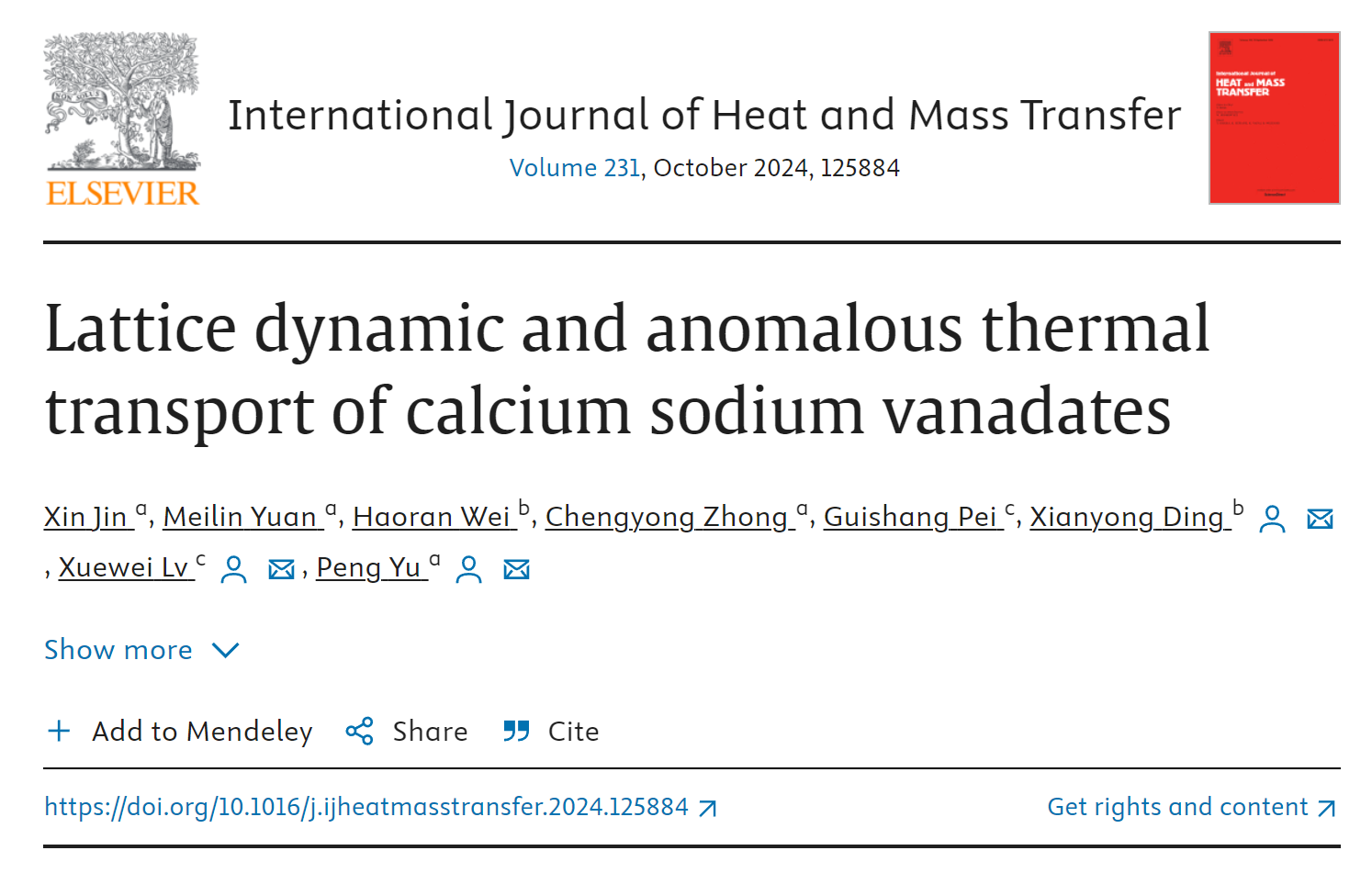 先进金属材料与非晶态物理团队在爱斯维尔旗下的传热领域顶刊、中科院热力学小类一区Top期刊《International Journal of Heat and Mass Transfer》发表题为“Lattice dynamic and anomalous thermal transport of calcium sodium vanadates”的高水平研究论文,论文以h韩漫