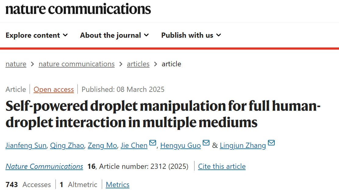 信息材料物理与器件团队在Nature子刊 Nature Communications上发表题为“Self-powered droplet manipulation for full human-droplet interaction in multiple mediums”的最近研究成果,h韩漫