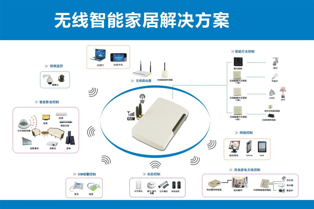 物联网智能家居沙盘系统是基于315M无线射频技术上开发的智能家居控制系统,兼容性强,用户可以使用手机/平板/脑,远程控制家中灯光、窗帘、电视、空调、影音等设备,同时产品支持智能电话、短信报警发送及联动控制,轻轻一按,居家固若金汤;50组情景模式的自由搭配,每组均可进行30个自定义操作,个性化智能生活,由您自在掌控。