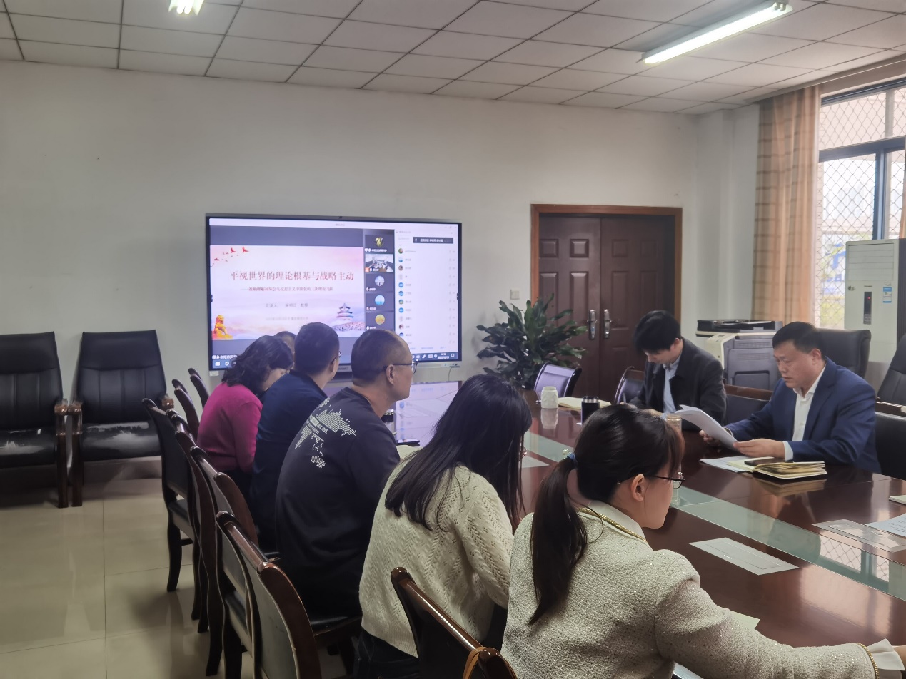 党委采取线上线下相结合方式组织了思想政治教育活动。本次学习邀请了市委宣讲团成员、重庆工商大学马克思主义学院党委书记宋明江教授,为物电学院全体教职工带来了题为“平视世界的理论根基与战略主动”专题辅导报告,学院全体教职工参加了学习讲座,本次学习活动由学院党委书记杨云主持。